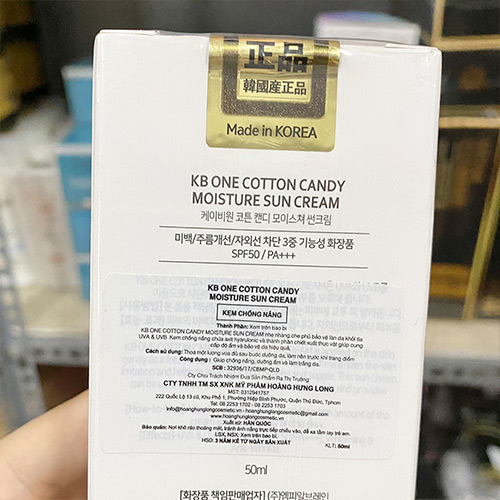 – KB ONE Cotton Candy Moisture Sun Cream bảo vệ làn da khỏi tia tử ngoại